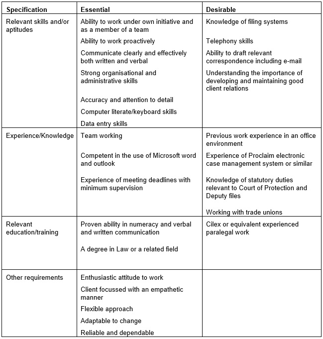 - To assist the Solicitors in the department with their caseload of professional deputyships and professional trusteeships